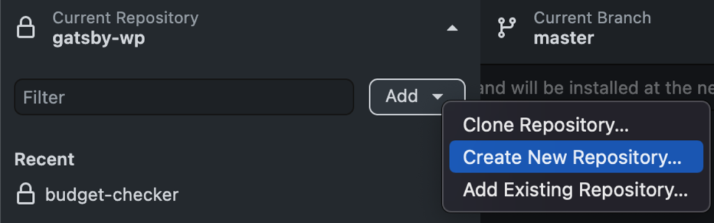 - Then click on the “Add” button and select “Create New Repository…”